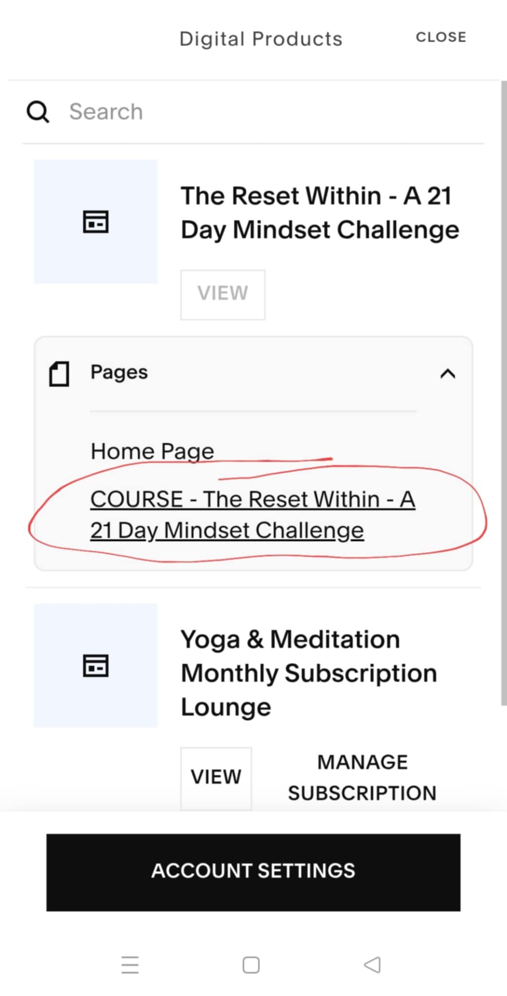 This will bring you to the Digital products page where will show you all your purchases. Click on course to resume